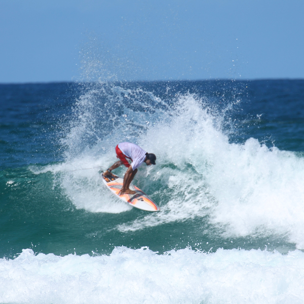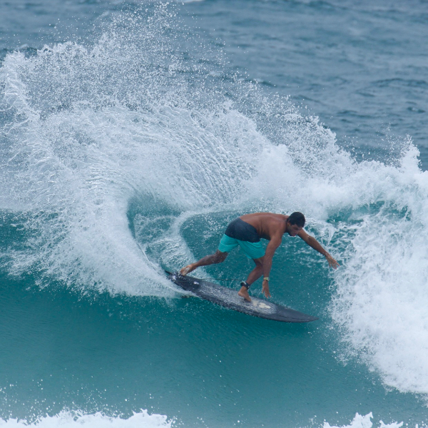 I grew up in Fortaleza Brazil where the beach was my home. I started surfing at age 7 and soon I was skipping school to chase waves.